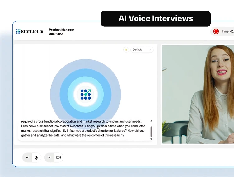 After resume screening, qualified candidates receive a link to record their video responses. They answer structured questions about their experience, skills, and role understanding.